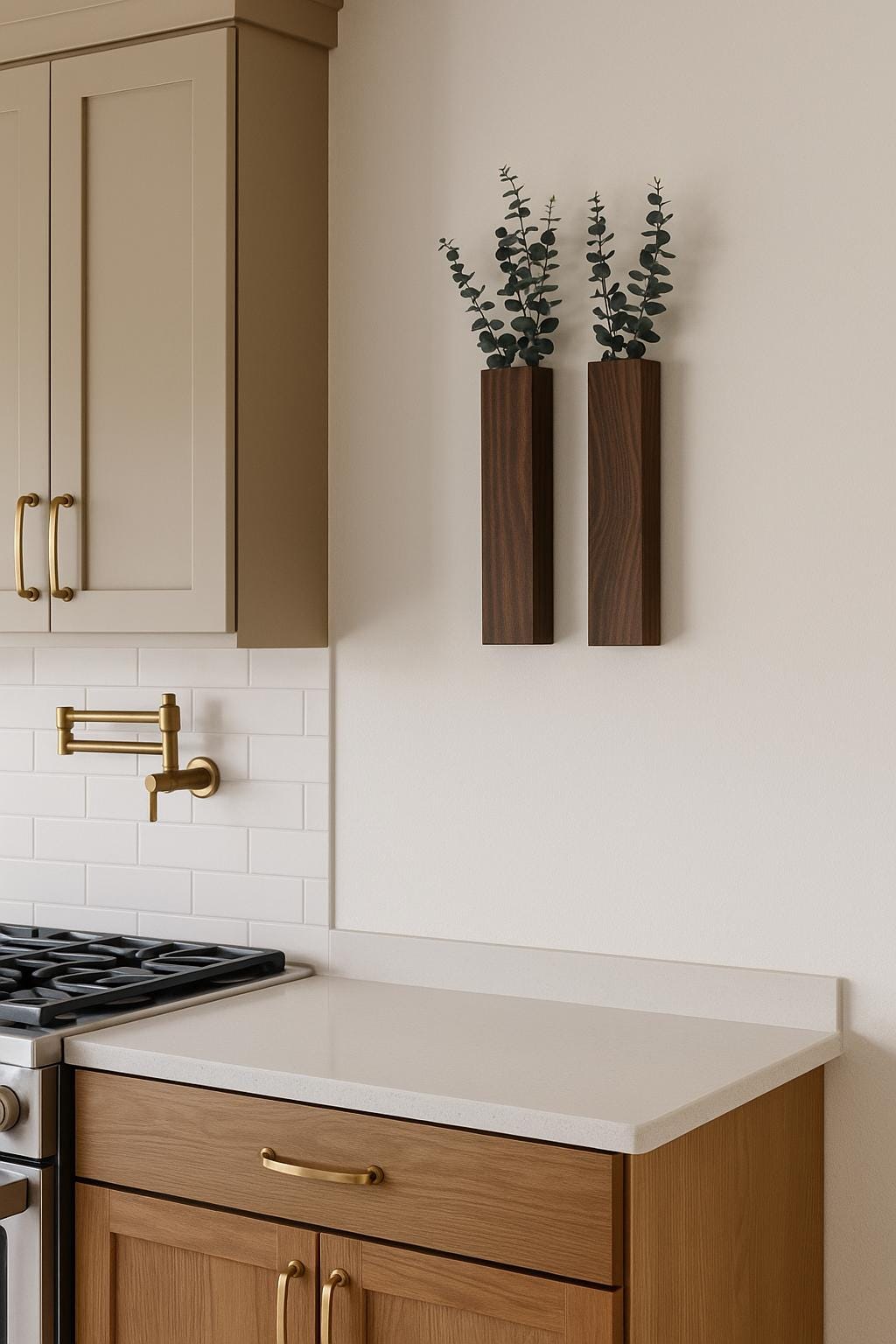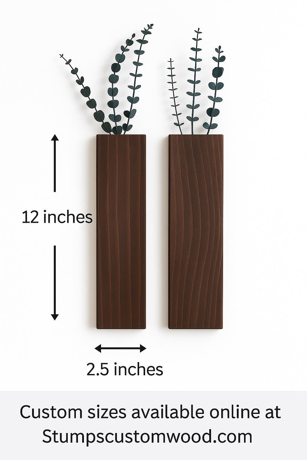 Each vase is handcrafted from premium hardwood and stained to highlight the unique wood grain. Whether you’re accenting a hallway, kitchen backsplash, entryway, or living room, these space-saving vases add warmth and texture to any modern, farmhouse, boho, or Scandinavian space.