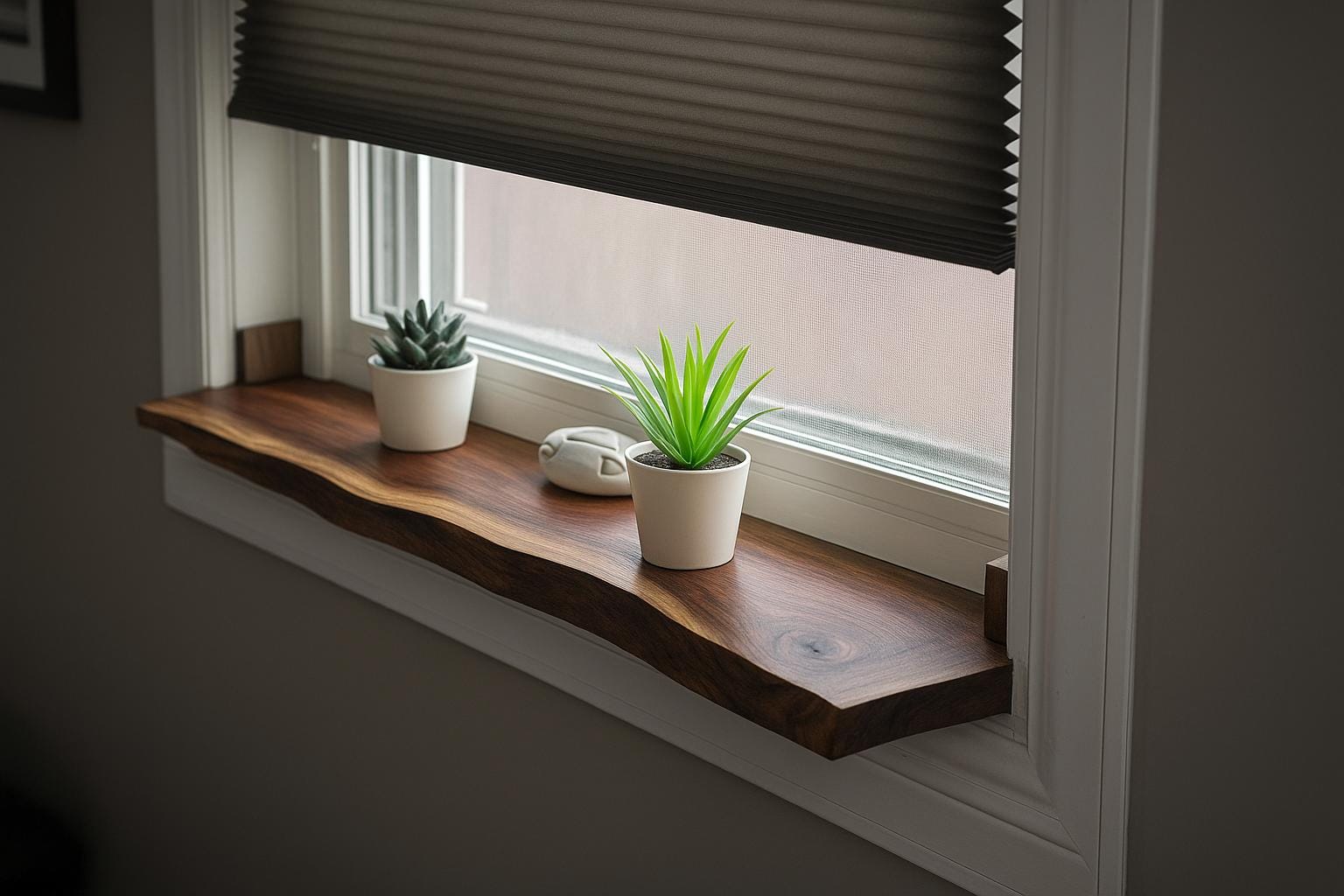 Walnut Live Edge Window Sill Shelf: Adhesive Rustic Plant Display for Home Decor